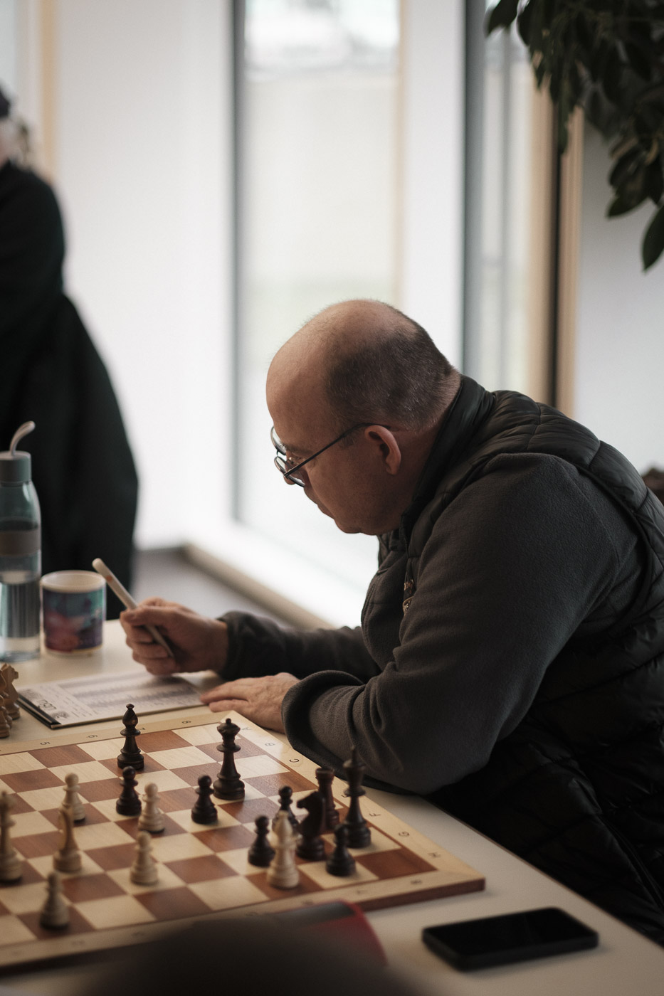 An Brett 3 belauern sich Andrej Sokerin (DWZ 1917) und Martin Fohler (DWZ 1915) auf Augenhöhe. Es geht eine Zeit lang gepflegt hin und her, bis man sich auch hier auf das Unentschieden einigt.