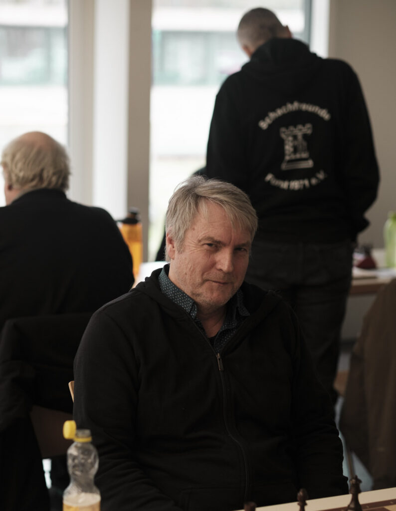 Marcus Krug (DWZ 2065) spielt an Brett 1 gegen Julian Dauner (DWZ 2133). Eine gute Partie. Dauner zeigt sich allerdings bestens vorbereitet und rückt gefährliche Bauern vor. Diese unaufhaltsame Phalanx besiegelt die Niederlage unseres Spitzenspielers.